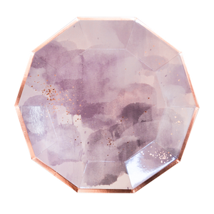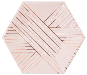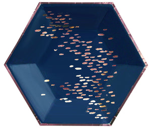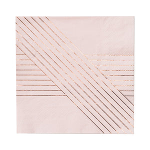• navy blue paper cocktail napkins with white and pale peach brush strokes and enhanced with rose gold foil details.