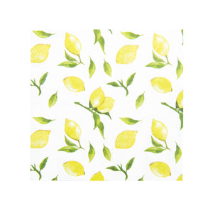 • bright yellow and green lemon print on white paper bowl  with a green trim  border and large set of lemons printed in center  of bowl.